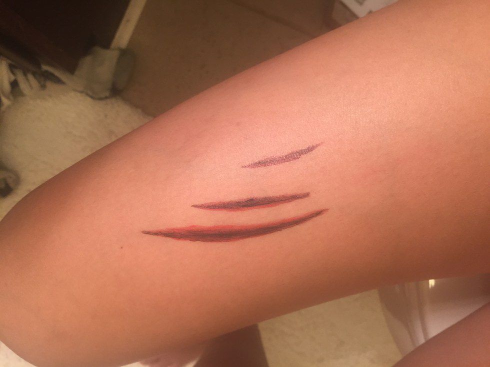 There you have it. Seems simple enough right? The next part is even easier. Now I'm going to show you how to paint fake cuts and scrapes. There are many many different ways to create cuts (of which I will do tutorials on in the following weeks) but for now I'm keeping it simple.