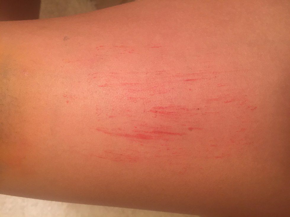 Step 1: Lightly scrape red paint wherever you're "injured."