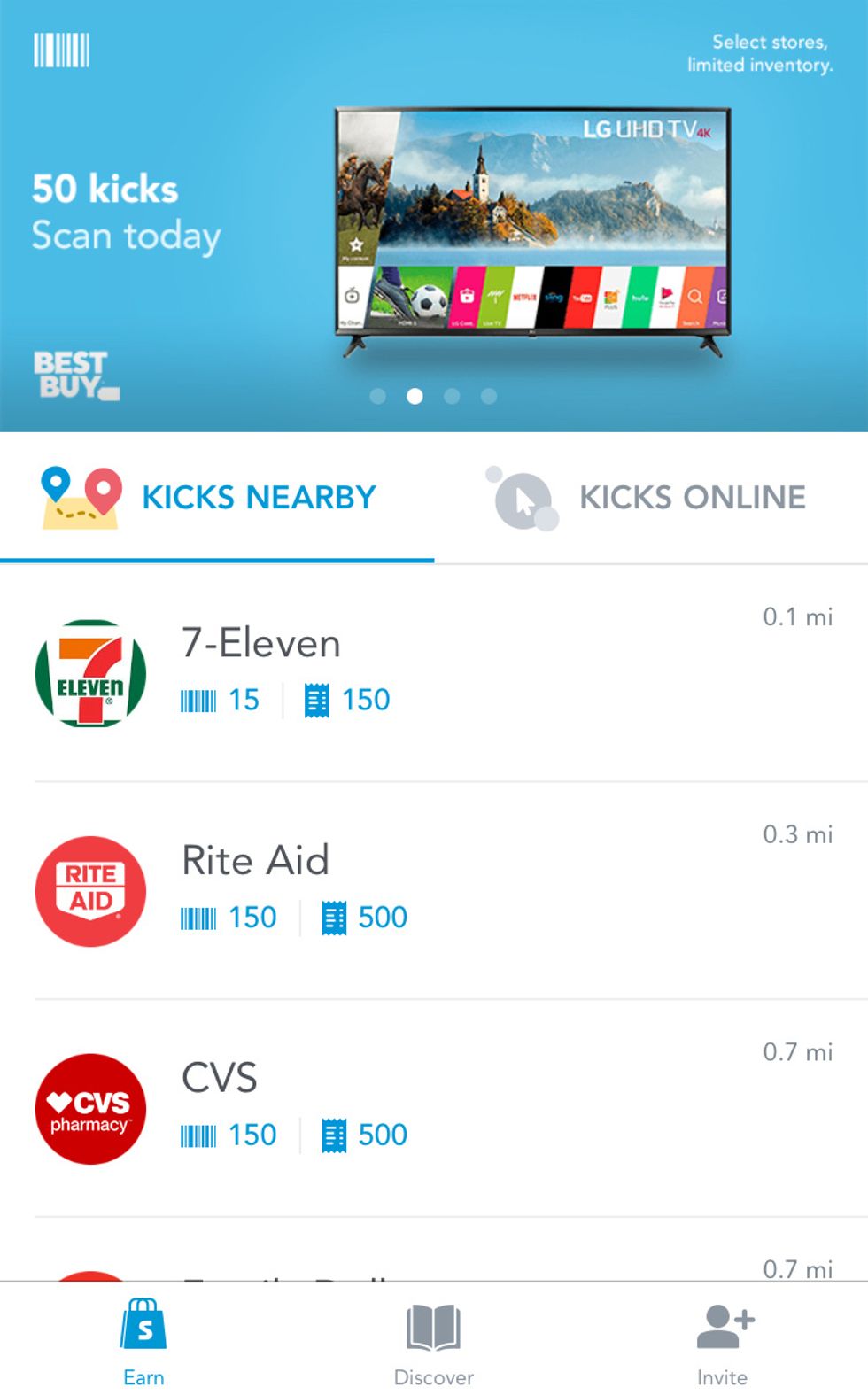 Shopkick is a unique shopping rewards app. You can receive "kicks" (these are basically points) for simply opening the Shopkick app and walking into participating stores, scanning certain products as you shop, or purchasing certain items. You can get kicks for purchasing items both in-store and online.