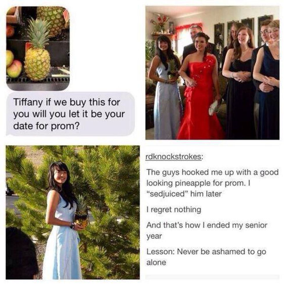 Prom coming up? Have a wedding to attend and no plus one? Who cares! Go alone. I am a survivor of the whole no plus one prom date scenario. I went solo and have no regrets. It was a great experience. So a few words of encouragement to any high schoolers feeling pressured into finding the perfect date for prom. Don't be. Going by yourself is always an option. It's definitely better than settling for a guy who is just looking to get some action that night.