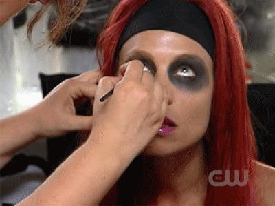 And then do her makeup. Teach her that there is such a thing as too much blue eyeshadow.