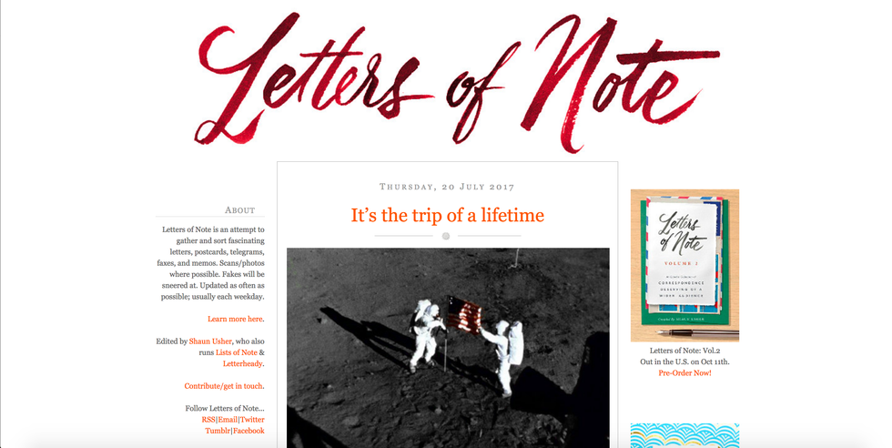 A really cool collection of interesting letters, notes, telegrams or other pieces of writing from around the world. Some of them are government related–such as the letter Buzz Aldrin wrote to a professor at the University of Maryland. Some are just adorable, like the letter a girl wrote to The Sun asking if Santa was truly real.