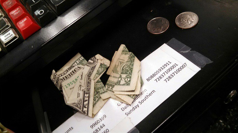 8. When you tell a customer their total and they pay with cash, only they don't hand it directly to you they place it on the counter alongside their loyalty card.