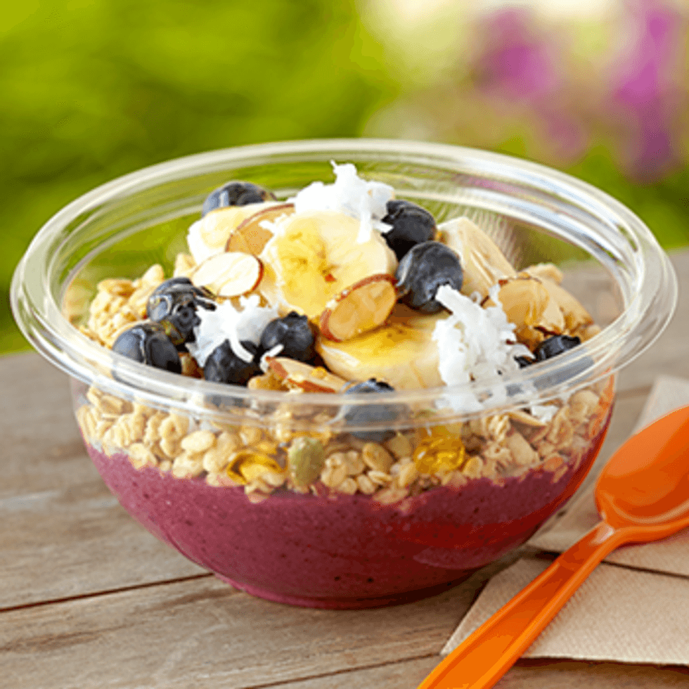 Acai bowls are all the rage these days. Sambozon Cafe in Newport and Cardiff takes this trend a step further and pairs their bowls with gluten-free granola. Go classic with the Burnquist Berry Bowl (granola, banana, blueberries, and strawberries) or taste tropical flavors with the Coconut Mango Bowl (granola, banana, coconut and mangoes). If you're feeling more adventurous, then try a PB&J reminiscent flavor like the Chocolate, Peanut Butter and Banana bowl (acai blended with chocolate and topped with banana and granola). Don't like any of these pre-made choices? Create your own for only $5.99. Not from Southern California? Try one of Jamba Juice's energy bowls made from either acai or Greek yogurt and topped with fruits and granola. Jamba Juice also vends different types of gluten-free smoothies.