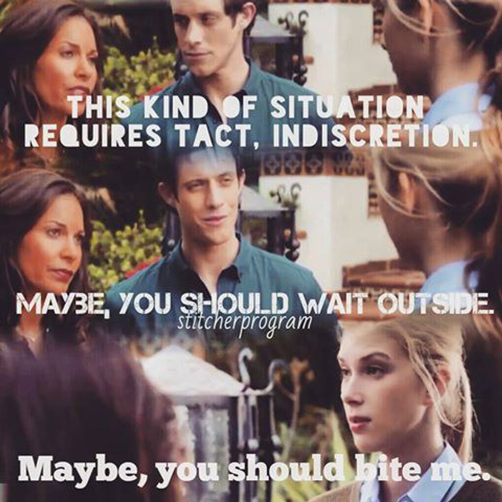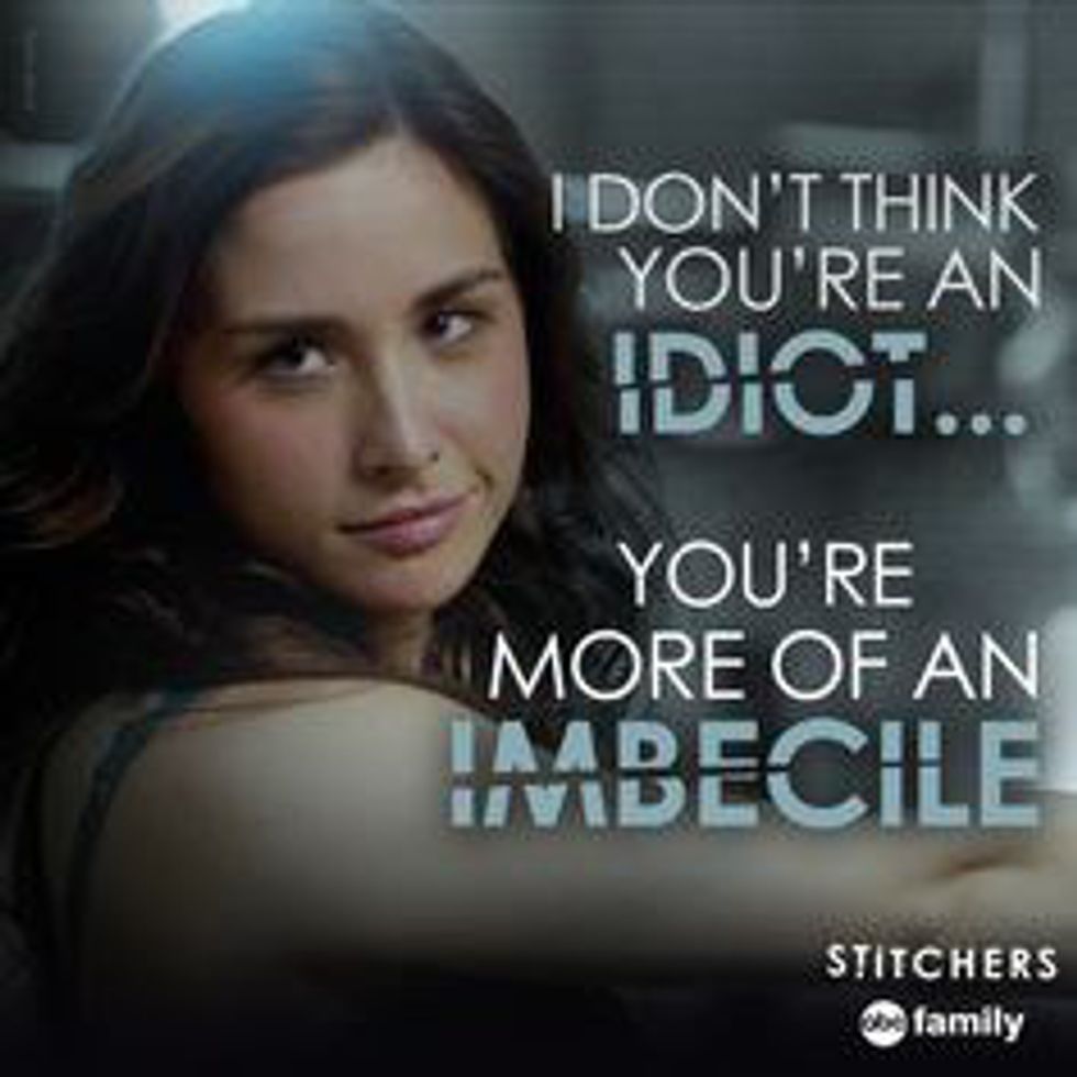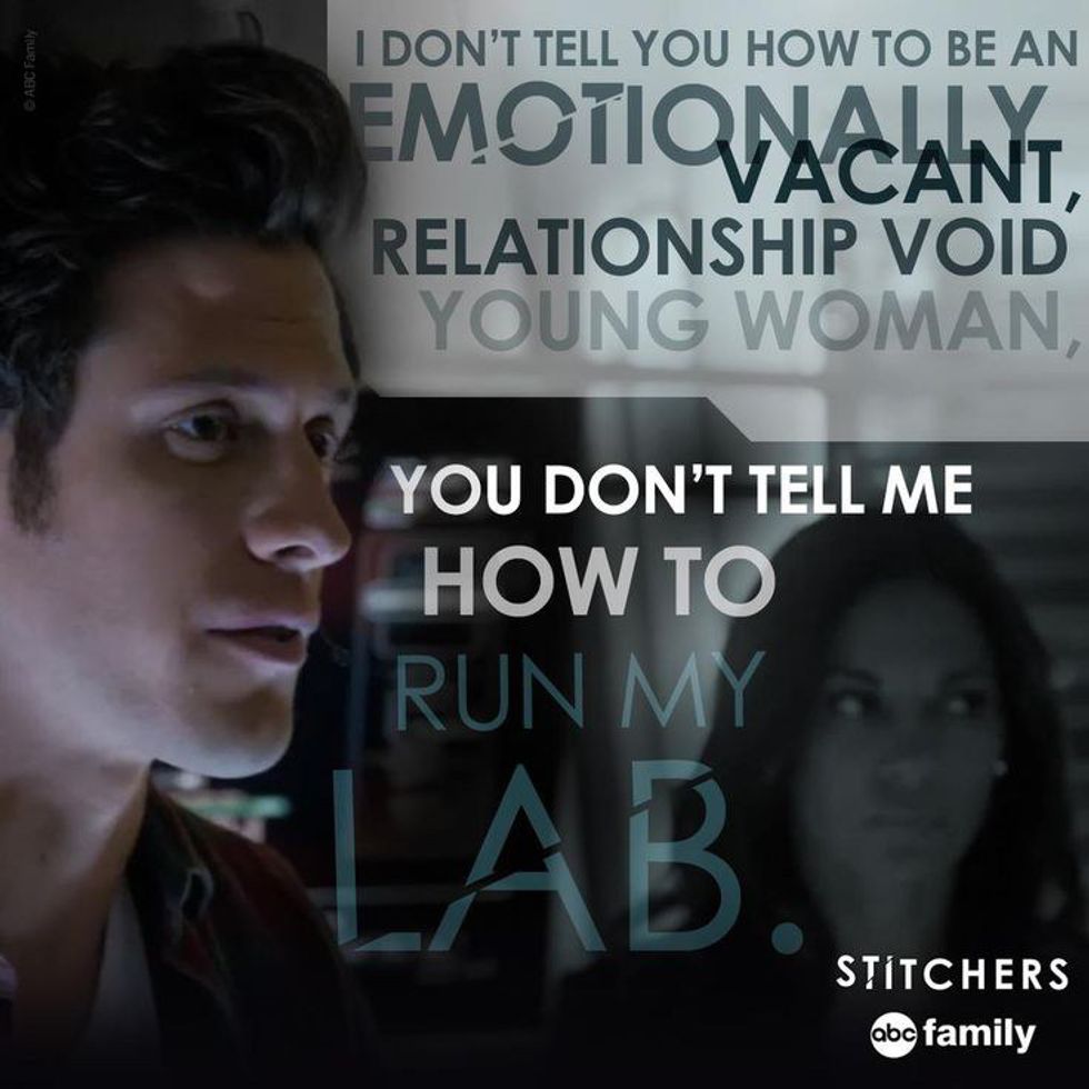 The show is hysterical! The writers do an excellent job at creating dialogue for the characters that leave viewers wanting more. The banter between the characters helps to establish relationships between the characters, which helps to make the show more enjoyable. "Stitchers" is about people working together to solve crimes and the banter between characters displays their wits and their smarts. Plus just looking at the examples above makes me (and hopefully you!) want to see what is going to happen next!
