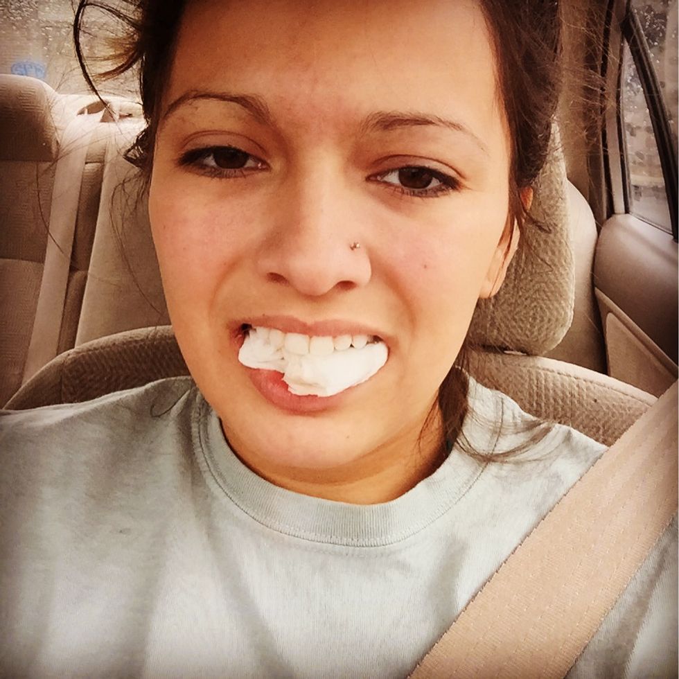 As soon as I got to my house and sat down on the couch, the pain hit. Oh, and was it painful. My mom was running around the house trying to find the pack of gauze the doctors gave her to replenish the soggy, blood-filled ones I held out for her to take. My friend was sitting on the couch telling me to remove the beautiful Instagram selfies I found necessary to post. The next thing I knew my mom was trying to spoon yogurt into my mouth, and I was just not having it. Sorry, Carol.