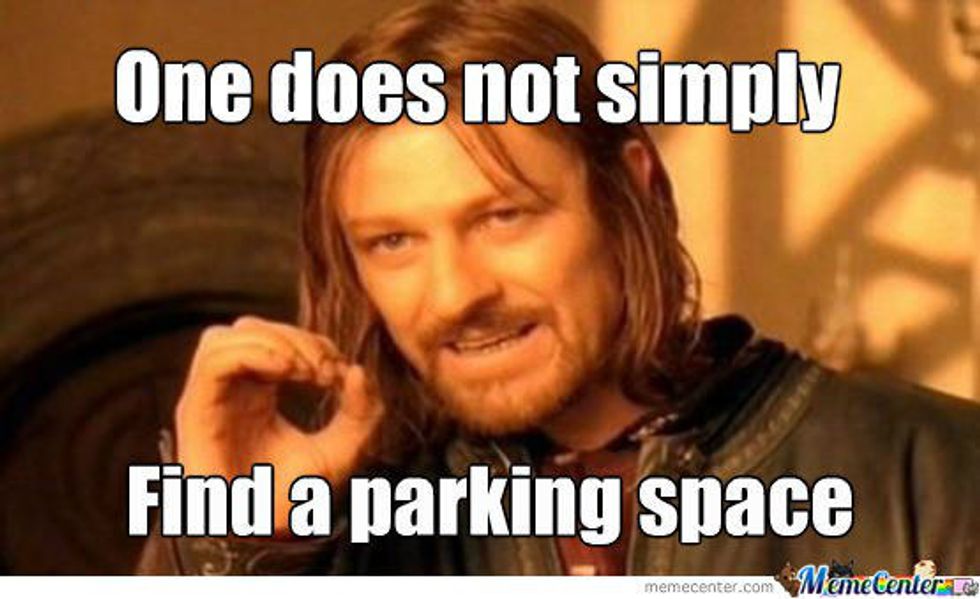I went to a commuter campus, which meant that finding a parking spot was often impossible. I would have to slow crawl and scan the aisles for cars with their lights on. I would stalk other students walking to their car. It was a desperate game that only led to frustration. You had to be patient and strategic when searching for parking.
