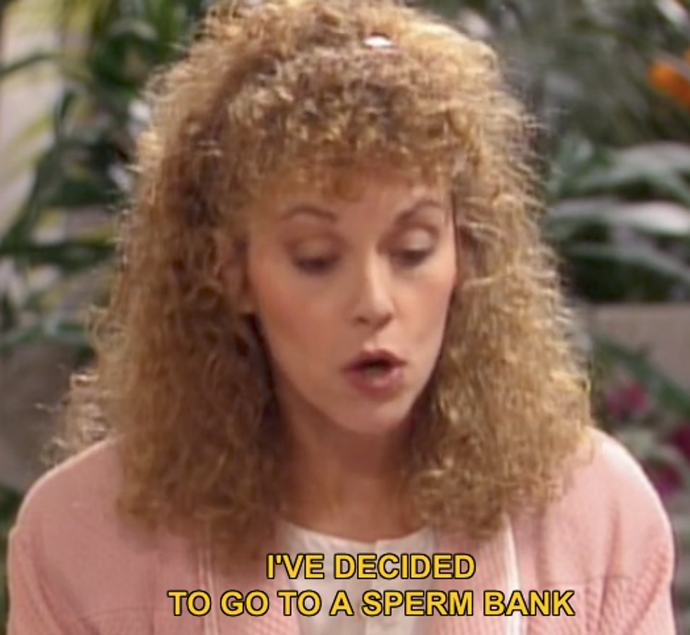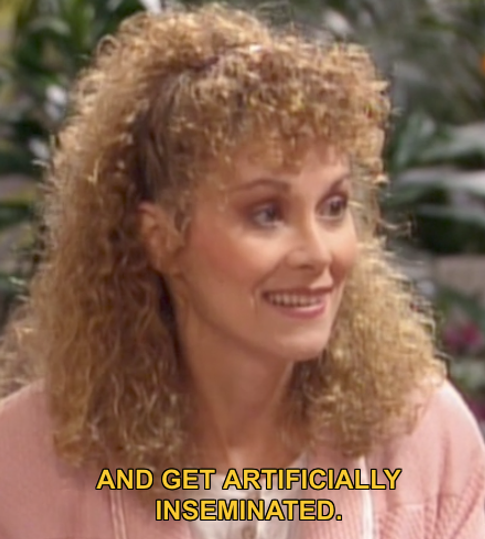 Artificial insemination isn't something widely discussed even today, let alone in 1989. When Blanche's daughter Rebecca admits she wants to have a child as a single mother and get impregnated from a sperm bank, Blanche is disgusted but eventually comes around. The themes of being a single parent and artificial insemination were doubly presented in this episode. The best part? When the girls hesitantly go with Rebecca to visit an actual sperm bank.