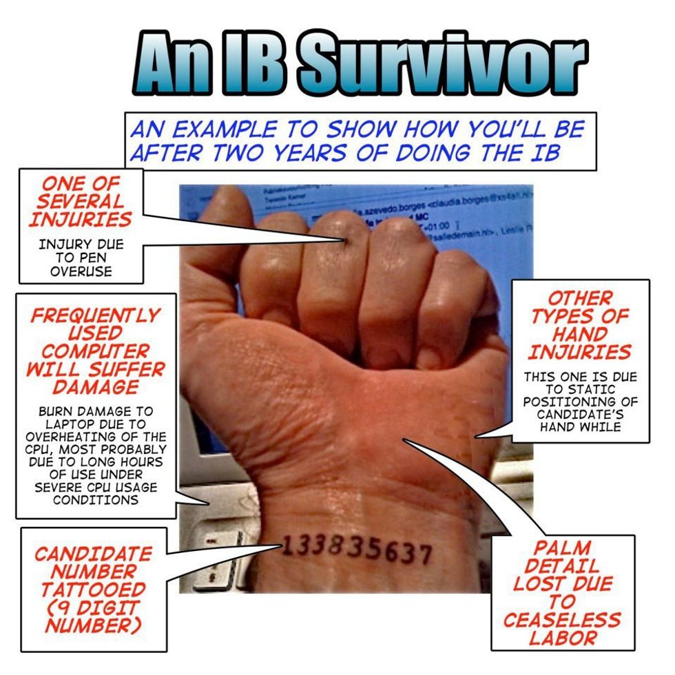 Take a deep breath and exhale. I'm telling you that everything is going to be alright. You aren't headed towards an early grave or slowly being driven insane. In an instant, you will be at graduation, and all the hard work and time you put into the program will be worth it when you finally get that IB diploma.
