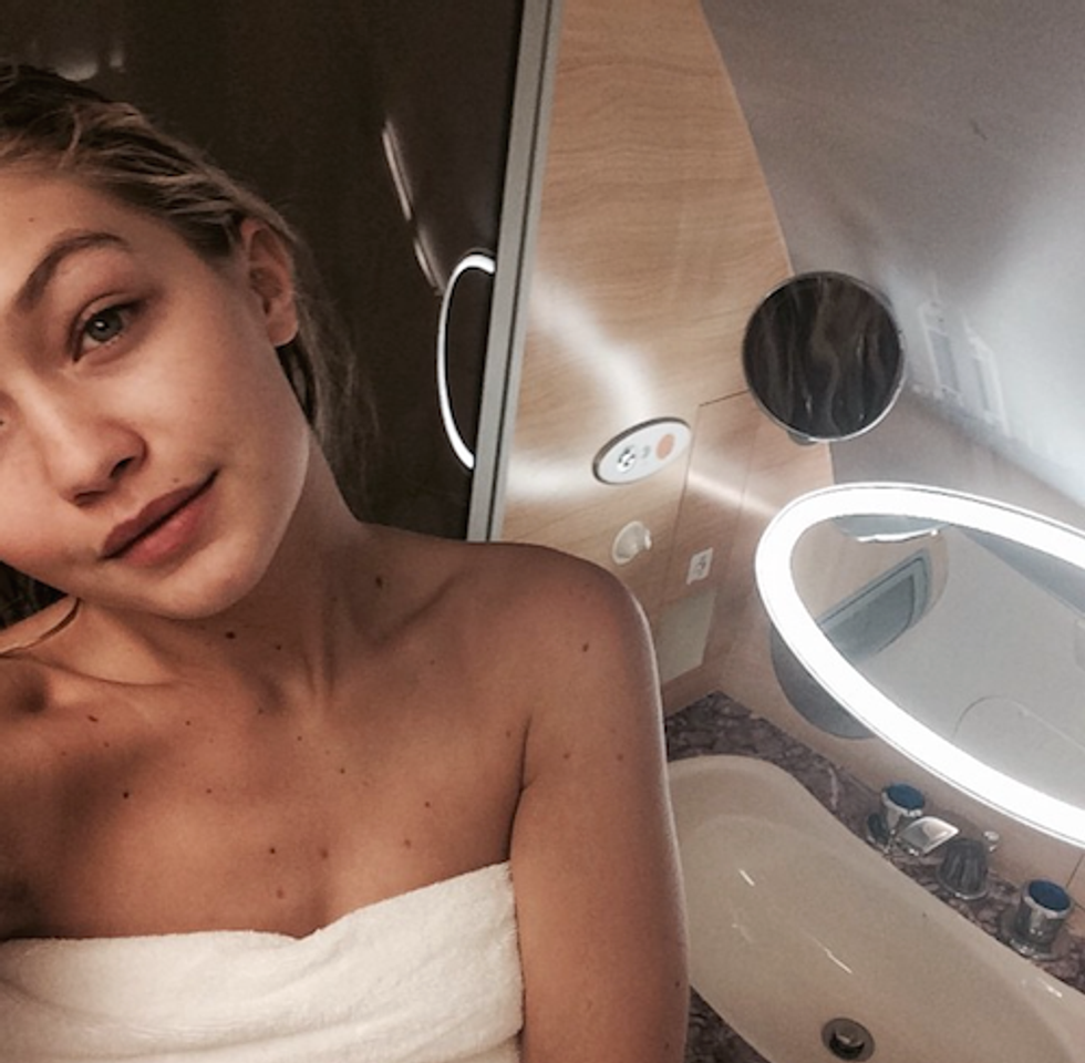 Gigi Hadid, one of the brand-new angels that was featured on the runway this year, has been working with the company for the past couple of years on their Pink line. She has great features and is naturally blessed with assets signature to the company, and can be easily recognized for her many freckles. However, Victoria's Secret removes all of her freckles in their campaigns.