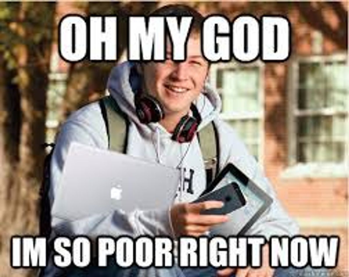We young people of the Internet age love memes about our own demise. Turning your "misery" into humor is a great coping technique on one hand but on the other hand it reinforces or adds to how miserable you are or think you are. Enjoy the memes and vines. Feel good about never being the only poor college kid in the room — no one is judging you when your card is declined because every student in line behind you at DD has just enough money on their card for a No. 4 combo. Just don't let it seep into you and surround you. Thoughts become things, so err on the positive side of thinking. "You can change the world if you change your mind."
