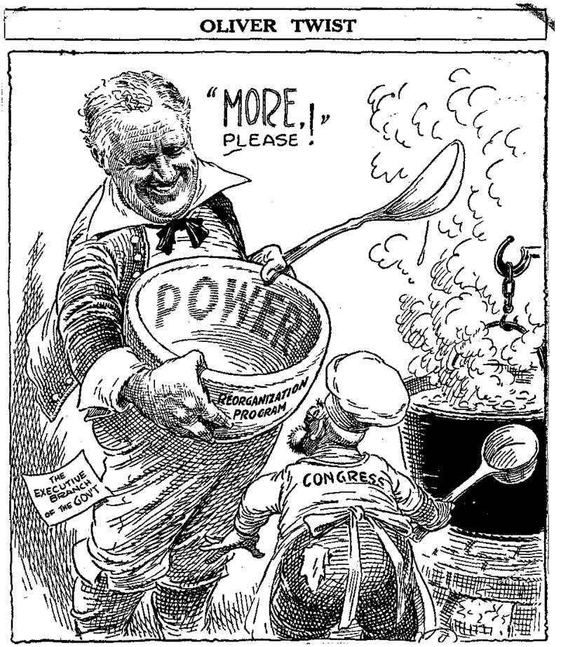 President Roosevelt, seen here lovingly depicted as both a power hungry monster and a helpless orphan trying not to starve to death.
