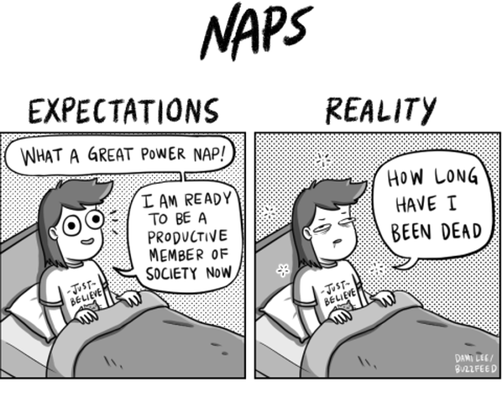 Some days, getting to nap becomes a priority. You wake up and you're already planning when you'll get to crawl back into bed. You take a break from your busy day under the false pretense that a 30-minute nap will recharge your energy and get you through the rest of the day. Then you wake up hours later wondering how you managed to sleep that long.