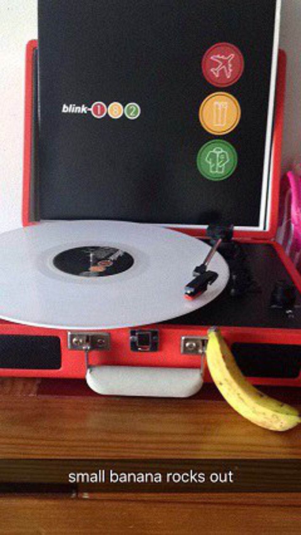 After the call ended, Small Banana picked out a few vinyls from my collection to listen to, and I discovered that bananas have excellent taste in music. How could have SB known that Blink-182 is my favorite band!?