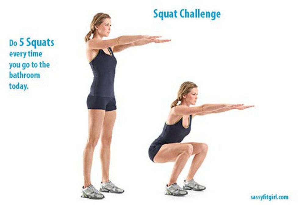 Now, I don't expect you to do the whole up-down squat while trying to beautify your hair. However, squatting into a deep stance and holding it while blow-drying can help improve that strength in the thighs and butt.