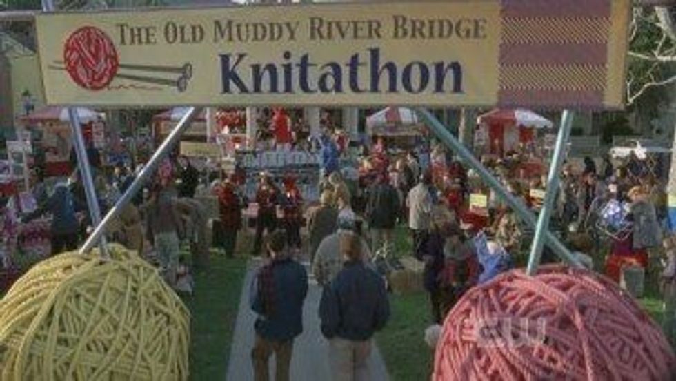 Stars Hollow's known for their crazy town events, everything from their 24 hour Dance Marathon, a Knitathon, all the reenactments and The Festival of Living Pictures. Every town has their little festivals for town bonding. Mine has Children and the Arts Festival, a Fall Peak festival, a Wellness Festival and of course the annual tree lighting.