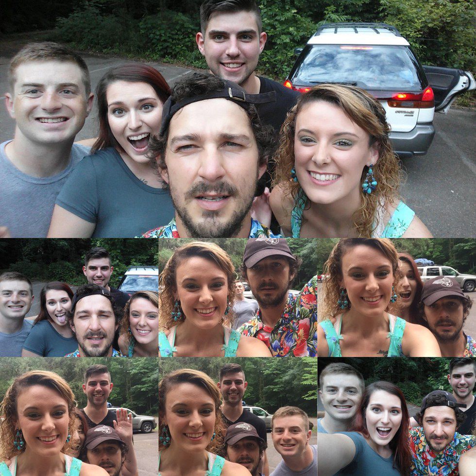 After we snapped our pictures Shia had to run off, seems as if he was doing some type of filming down one of the trails at the caverns, so keep your eyes open for that to make a debut. My friends and I were still standing around the parking lot whenever he came back. We asked if we could get some better photos with him since he was in a rush before. He took my friend Heather's phone and started snapping pictures with all of us. He was very down to earth, very easy to talk to. My friend Matt even asked him, "Man, I gotta know. What was it like kissing Megan Fox?" LaBeouf shied away from this question. Heather and I joked about touching his butt, although neither one of us had the courage to do so.