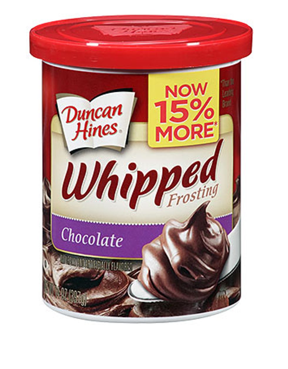 Frosting! Can you believe this stuff is dairy-free? I'm a huge frosting fan, so when I found this out, I couldn’t believe it. Duncan Hines whipped frosting's leading ingredients are sugar, cocoa powder, and vegetable oil. Now you can slap this on your vegan cakes and feel like the princess you are.