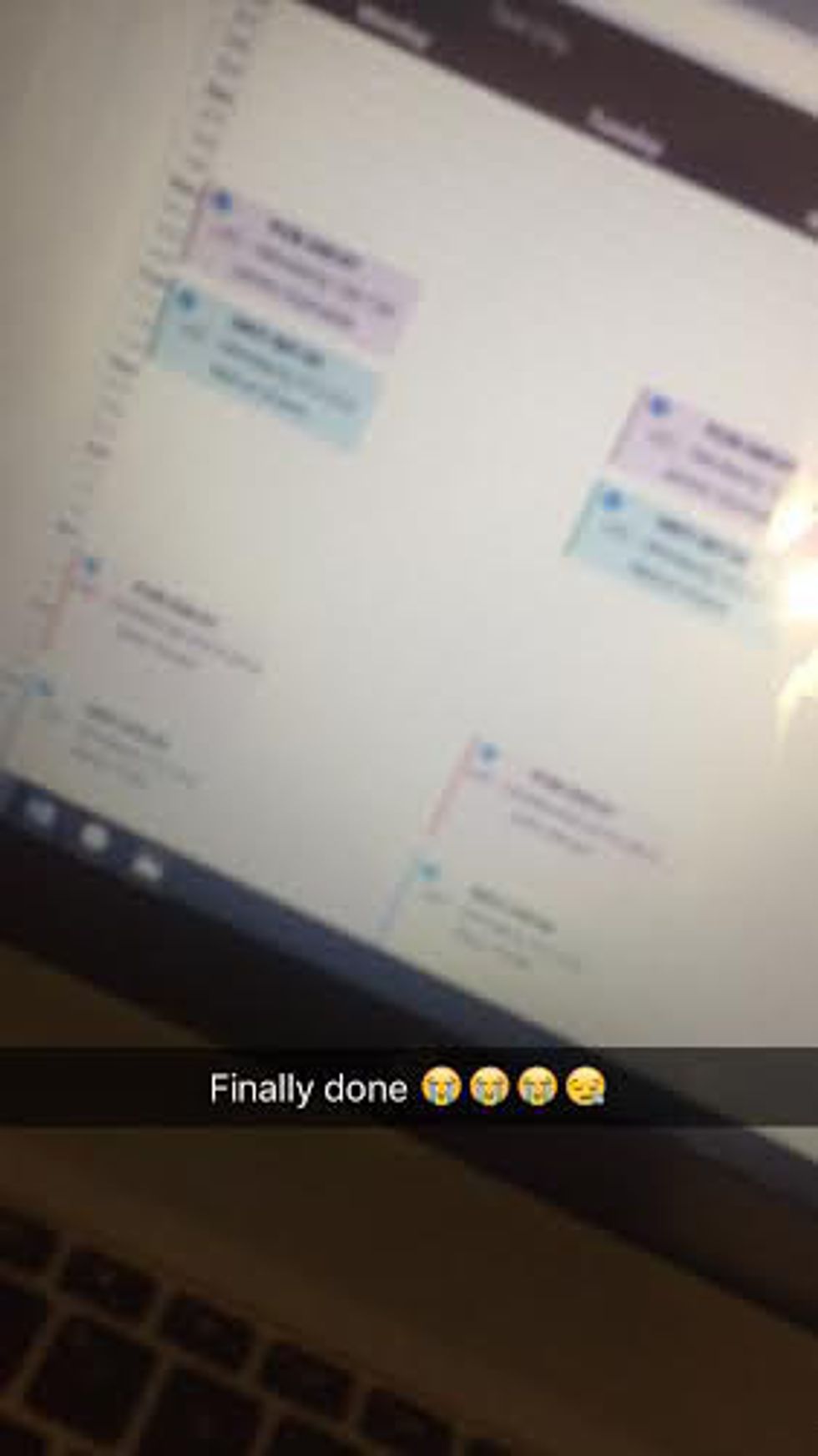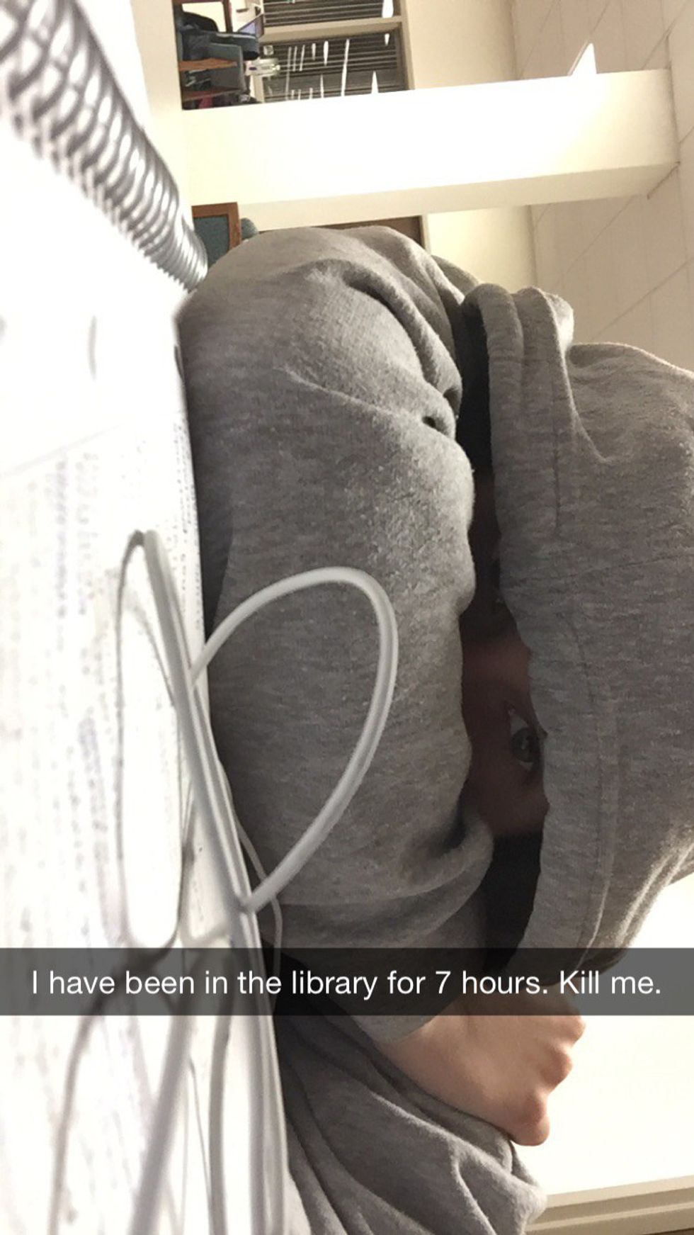 8. Snapping in Murphy with the time filter somewhere between 12 a.m. and 2 a.m. accompanied by the heavily crying emoji and #finals.