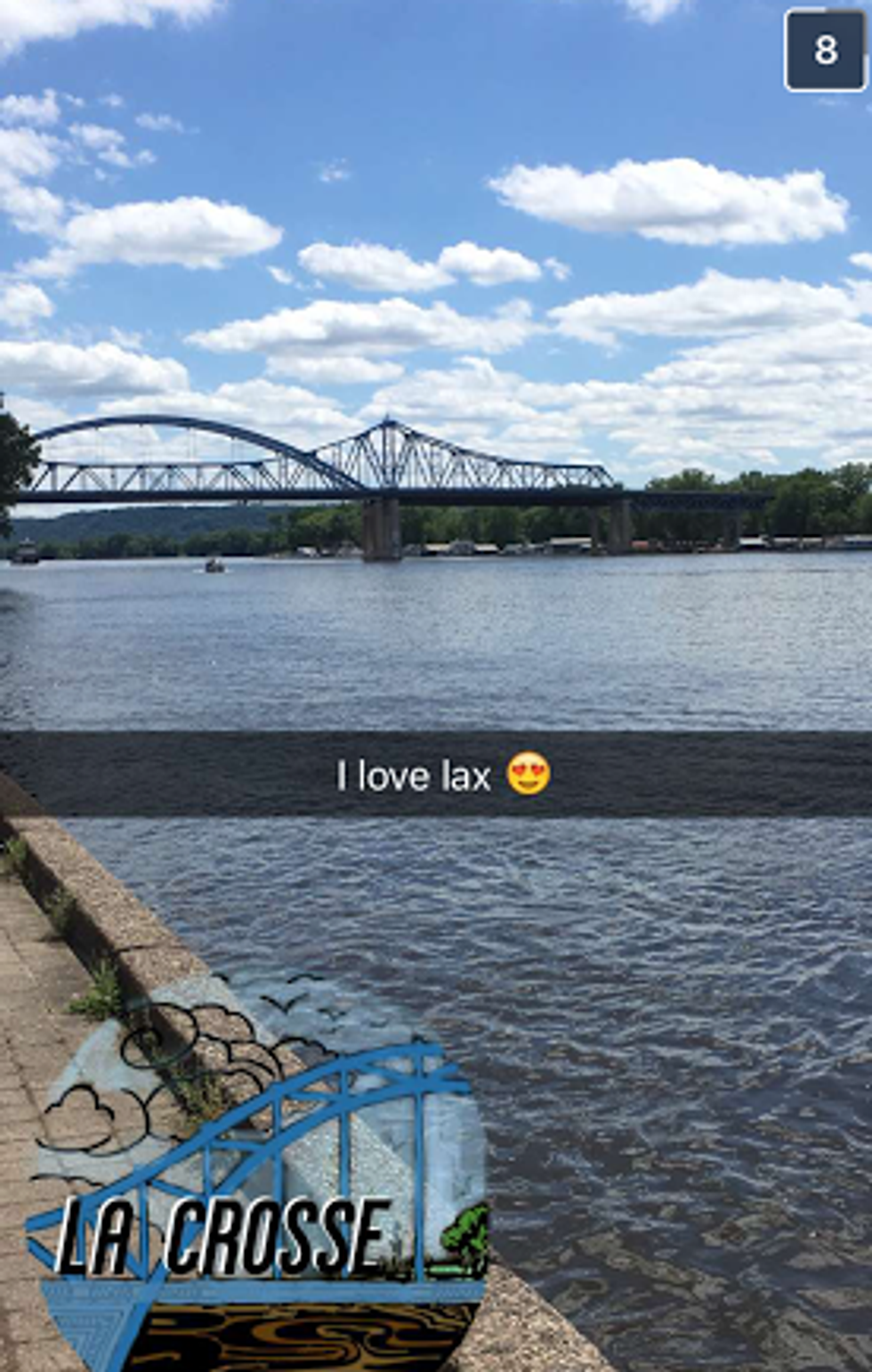4. Snapping a pic of the river with a unique and clever caption like "I love lax" *La Crosse Filter* *heart-eyed emoji*