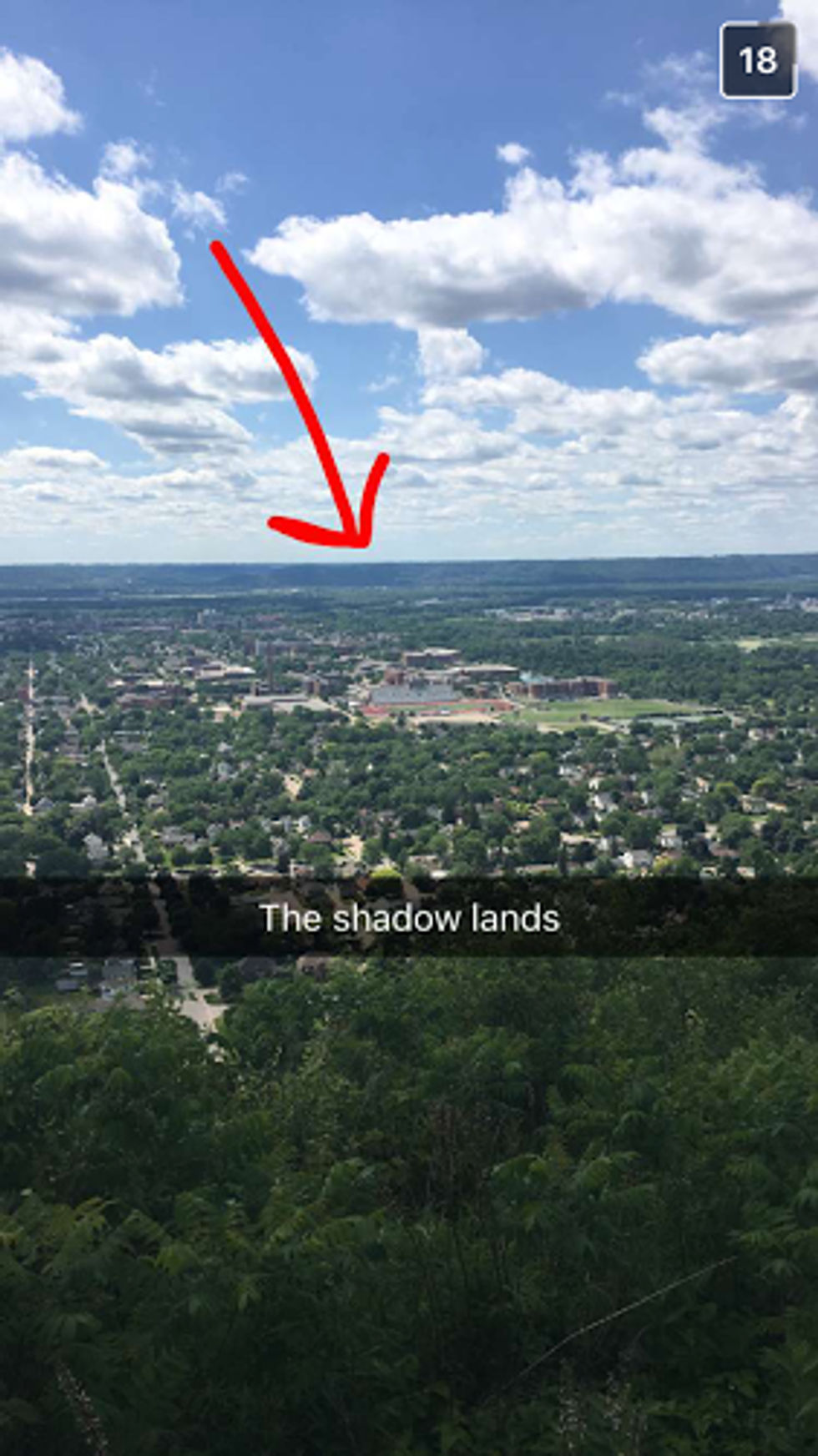 10. And finally a cliché, but very worthy, Snapchat of the view of our campus, our city, and our people from the magnificent altitude of Grandad Bluff (With an arrow pointing to Minnesota in the distance specifying the area we must never venture to).