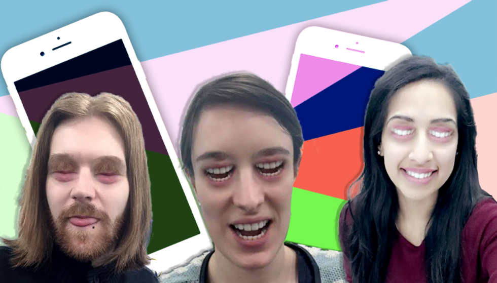 Snapchat has answered a question no one has ever asked: what would my face look like if my eyes were replaced with my mouth? This filter is pretty terrifying to say the least. It seems to me like Snapchat was running out of ideas and got lazy and a little bit weird. I like my eyeballs just the way they are, although if this were real life, having three mouths would mean 3x the more food and I can't complain about that.