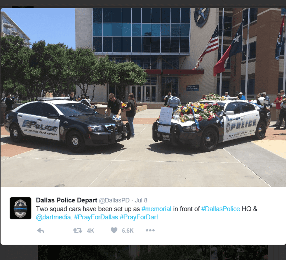 "We are so thankful for the overwhelming prayers, support, love, and donations from everyone. Please continue to keep the families of the officers in your thoughts and prayers. Out of respect for the families of the fallen and injured officers, the Dallas Police Department is waiting to officially release their names pending approval from the family members."