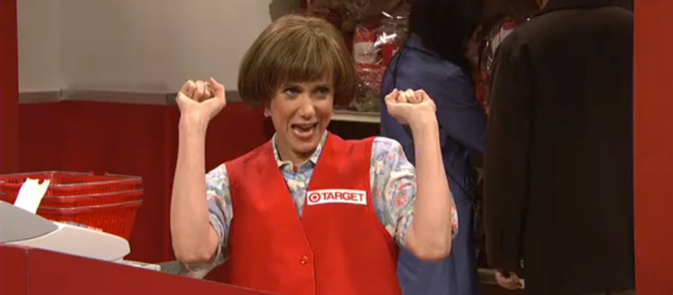 Okay, so as you can tell I am a fan of Kristen Wiig characters, but so many of them are iconic. Target lady, the cashier a little too obsessed with Target (who isn't though?) is a super simple costume to complete. Pair a hawaiian shirt, red vest, and bowl cut with the target name tag and you're good to go. (Salval will definitely have a Hawaiian shirt by the way).