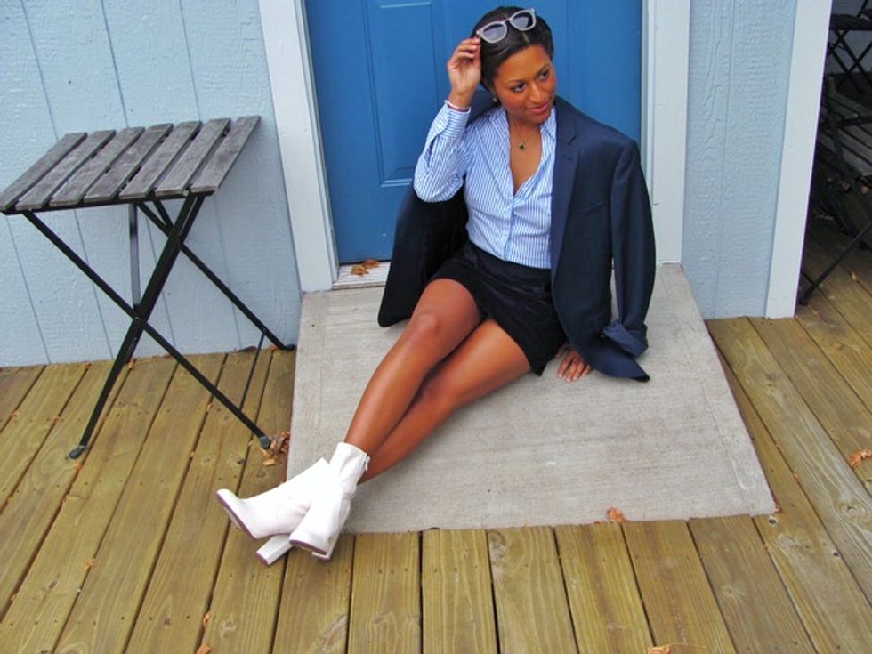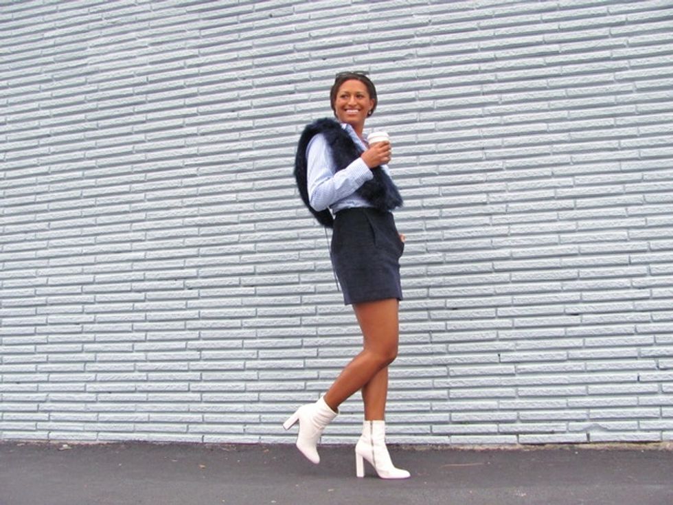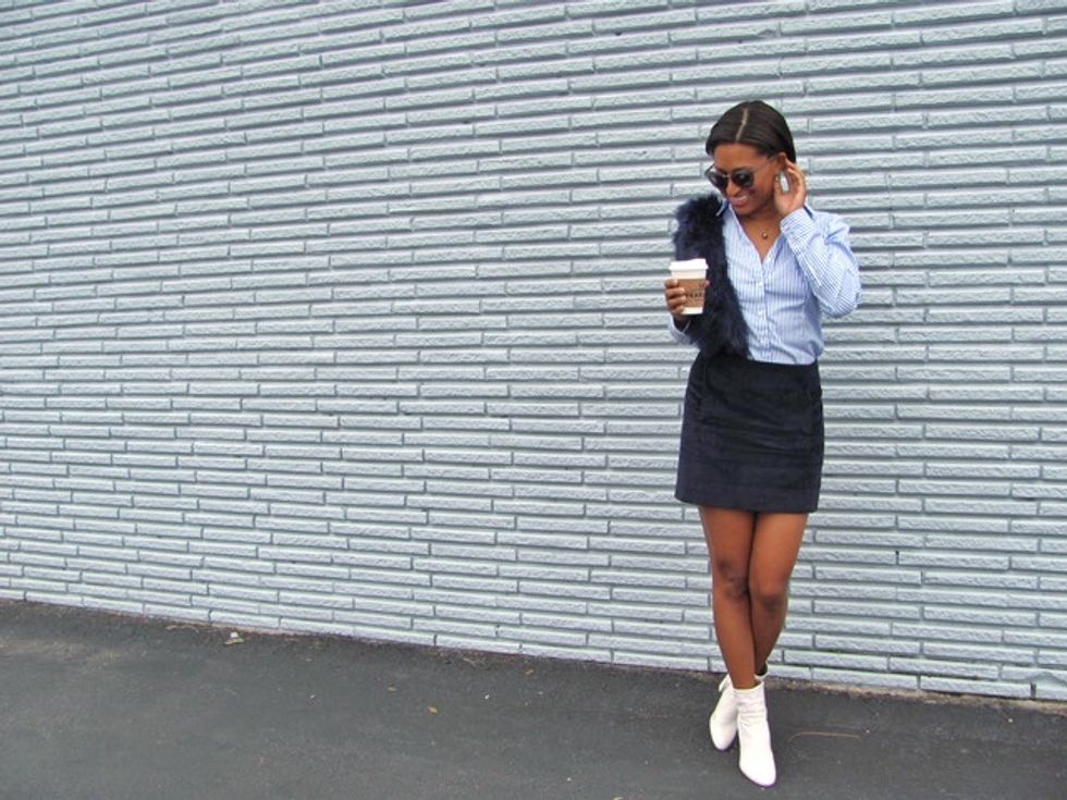 Shirt: Express {Similar} // Skirt: Cos // Blazer: Calvin Klein // Boots: Steve Madden