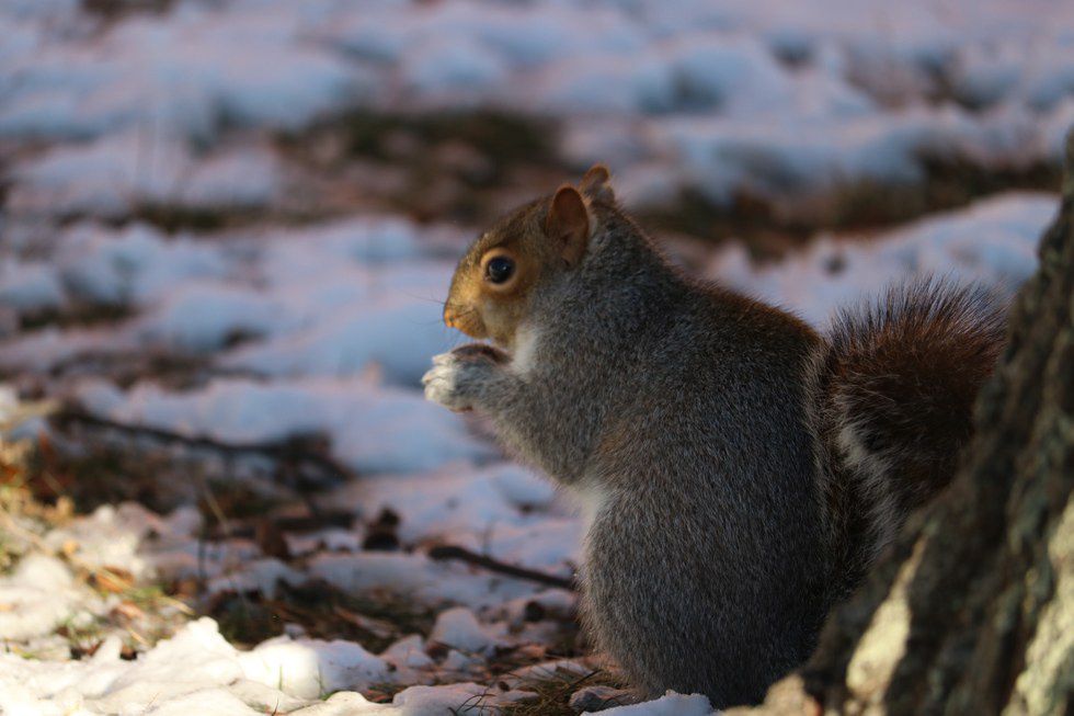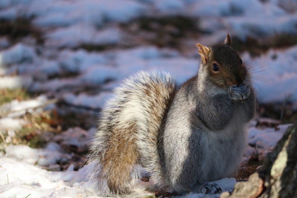 Walking in the college campus, one can easily find traces left by squirrels. Even in winter, one may still able to see these little animals running around in the snow, bringing life to campus.