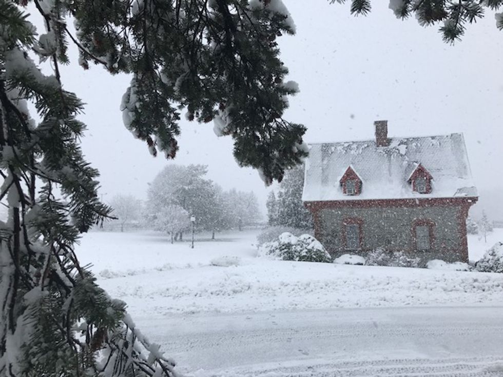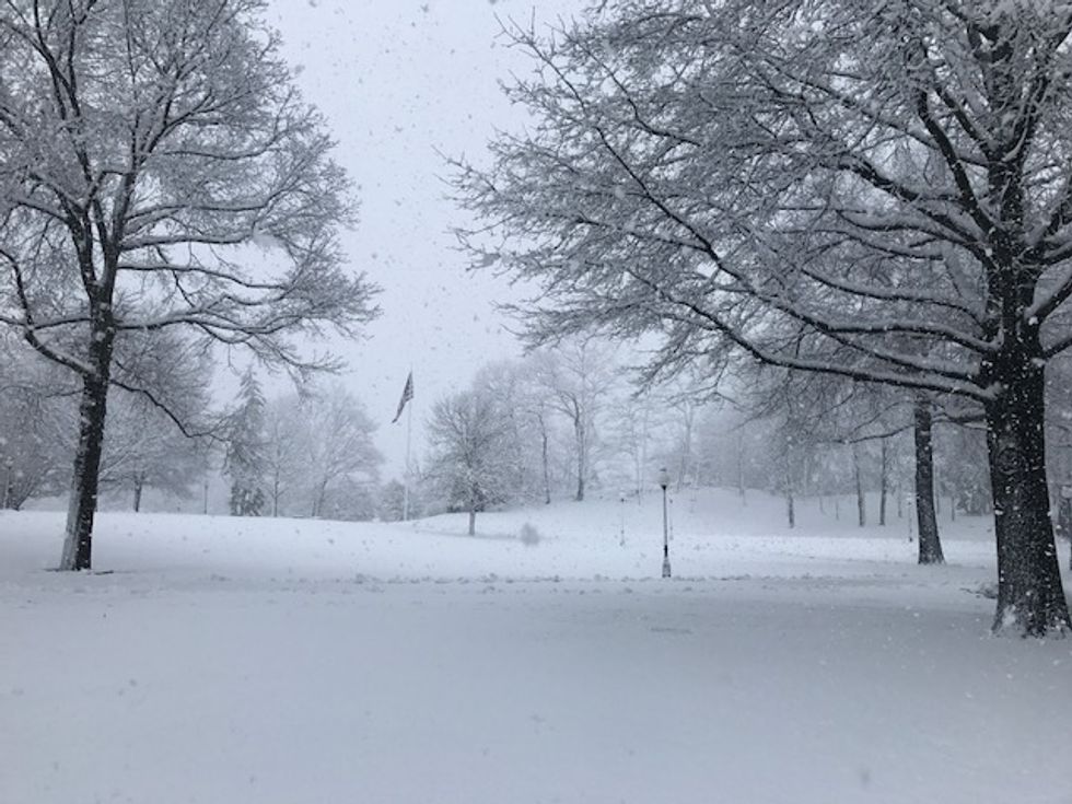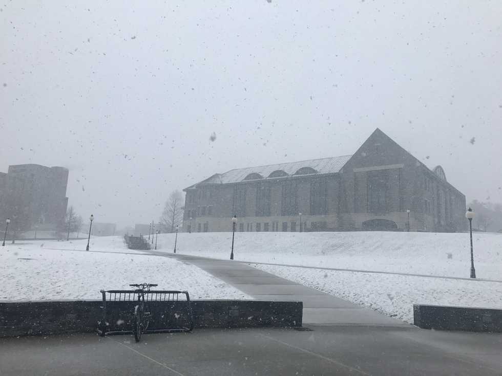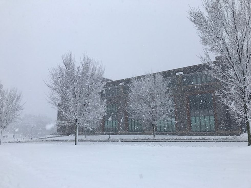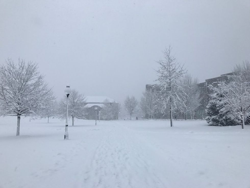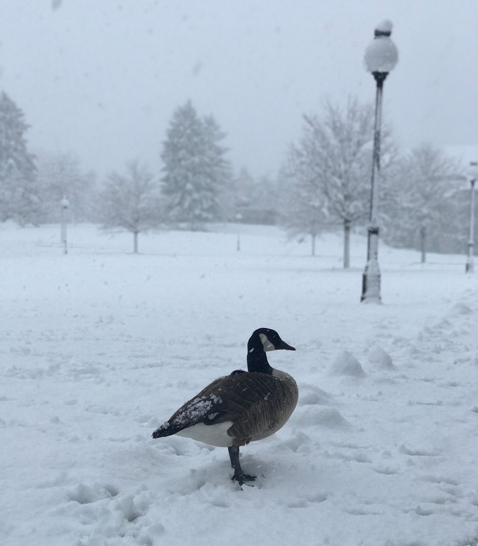 Take a look at the snow-kissed buildings, weighed-down trees, and the random goose that enjoys campus too much to fly south.