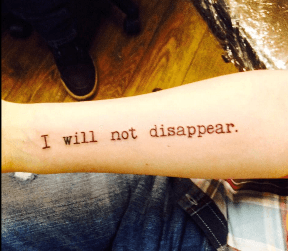 My first tattoo, which I got in December 2015 as a gift for my 17th birthday, is considered a "simple" and "small" tattoo– it's black-and-white, consists entirely of words, was fairly inexpensive as tattoos go, and took only about twenty minutes to complete. Here's what it looks like: