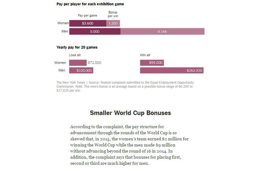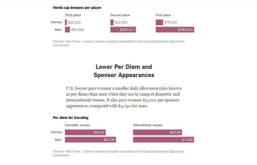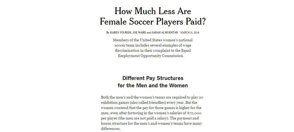 In these screenshots obtained from the NYtimes, the women's U.S soccer team's claims have foundations, and their right to strike couldn't be more just. If the U.S women's soccer didn't stand up against something that has deep roots in gender inequality, then what would it say about women in general? They are not greedy, selfish, or ungrateful. In fact they are far from that. The disgrace placed on those who want equal pay, has gone on too long, and without basis.