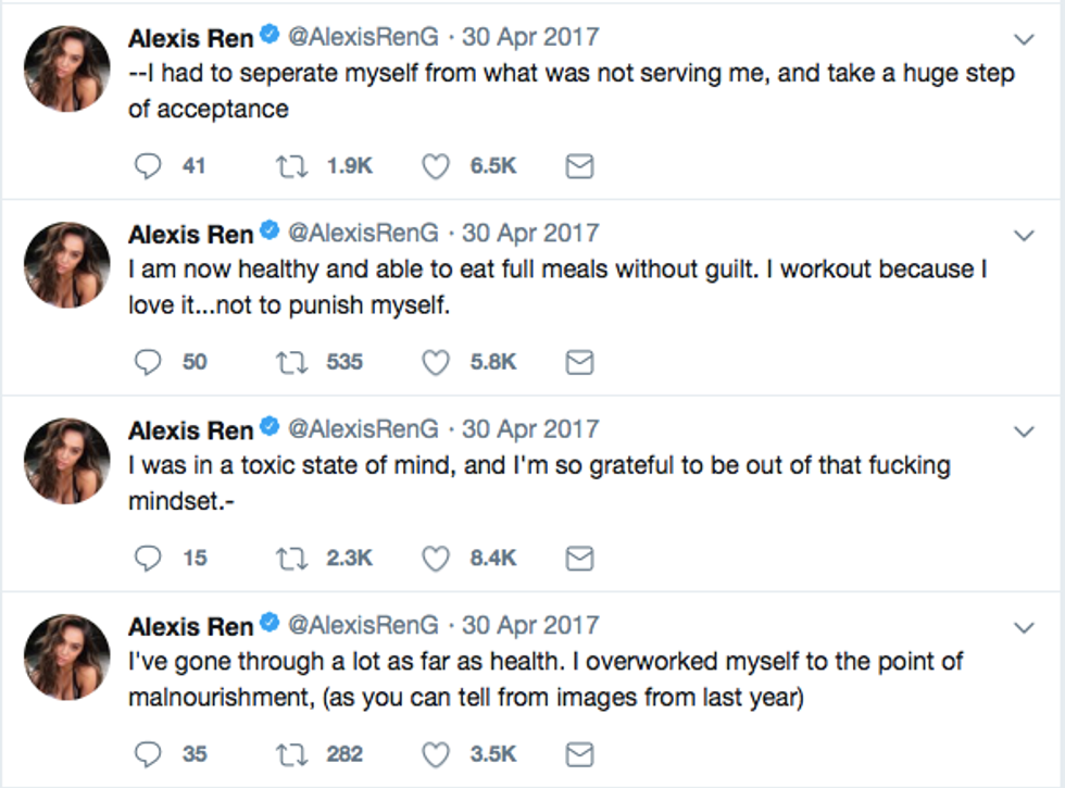 Alexis Ren, a model who gained popularity with her 11.9 million Instagram followers, admitted last year that she was not healthy and found herself in a “toxic state of mind.” Her full story was published on Cosmopolitan.