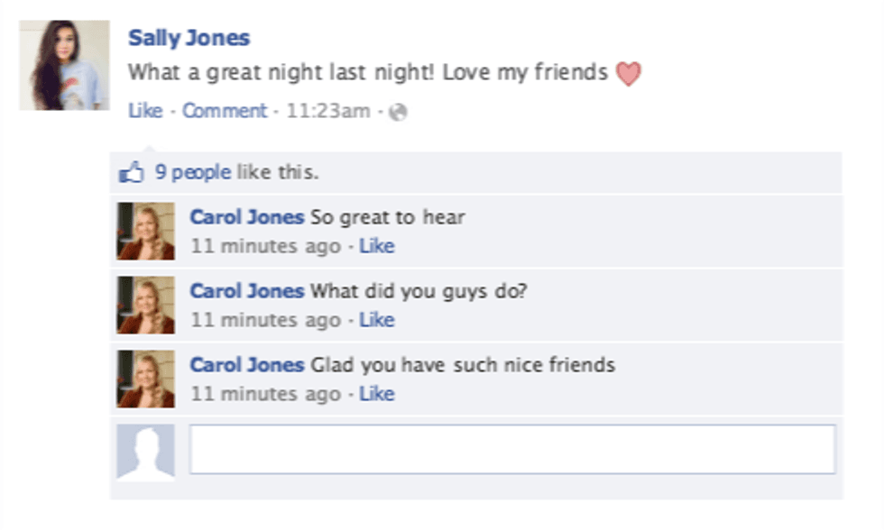 A person's photos are supposed to be indicative of their social life. All the comments should not be from Mom, Aunt, and Grandma.