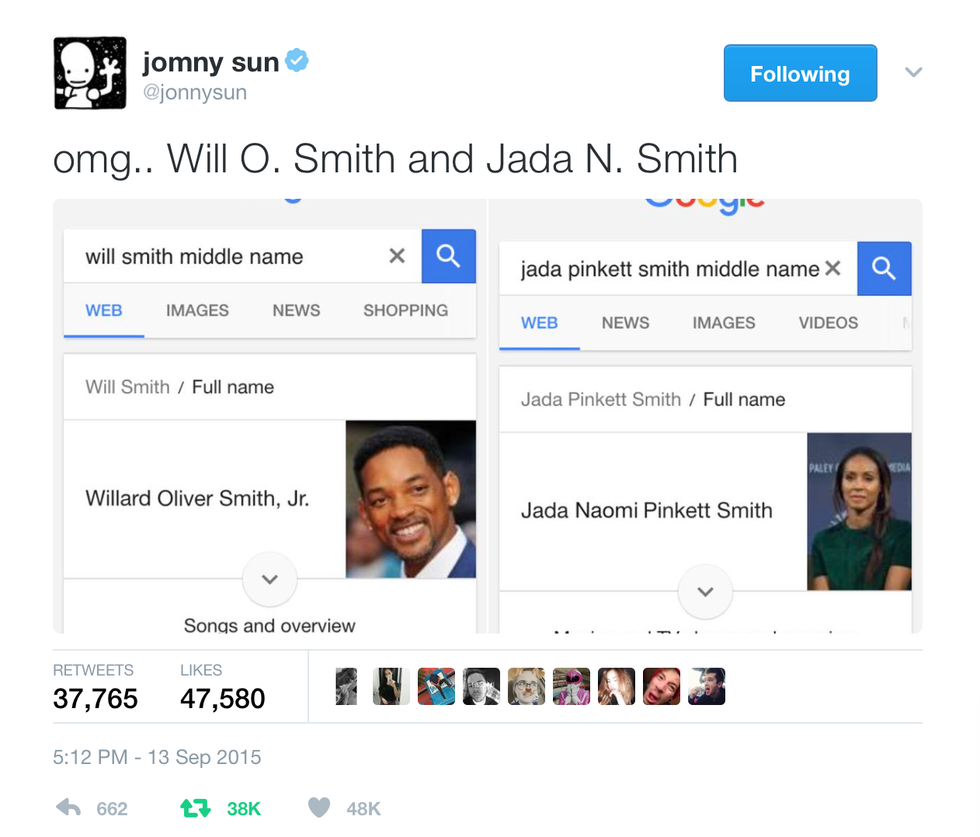 What often makes things worse is that people have a desire to be “in the know.” Knowledge has always been power, and people always want to be the smartest in the room, even if that means “knowing” false pieces of information. What better example than Jomny Sun’s “realization” about how Will and Jada Smith named their children.