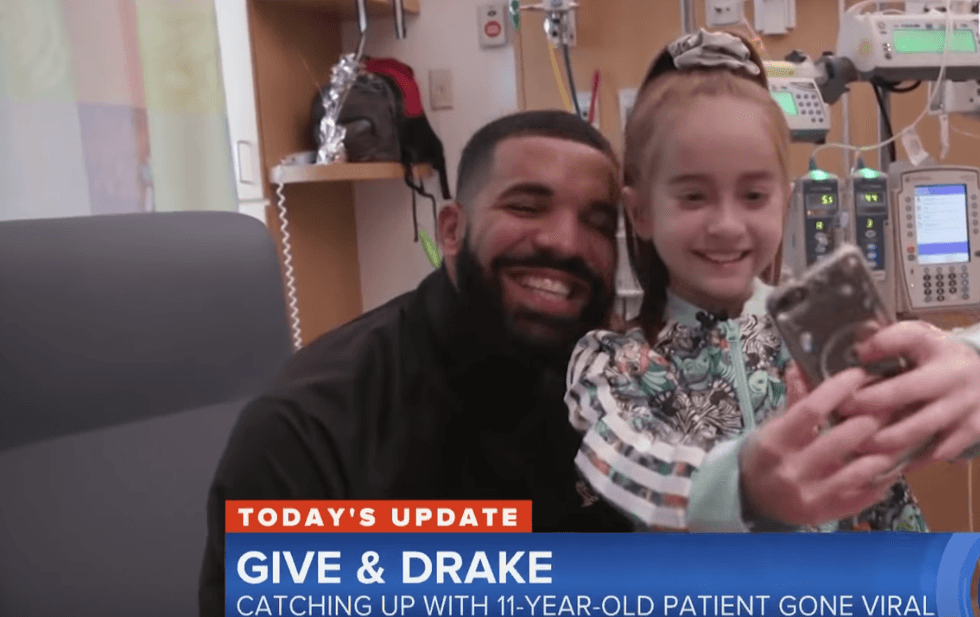 The 11 Year Old Drake Fan, Sofia Sanchez, broke the internet with a video of her dancing to Drake's "In My Feelings" as she walked down the halls of a Chicago hospital. The dance challenge went viral on Twitter in 2018, but Sofia blew all the other videos out of the water with her 2019 version. Sofia only wished for two things for her birthday: a new heart and for Drake to visit her in the hospital. Soon after her wish, the famous rapper Drake came to visit Sofia in the hospital. The excitement in the 11-year-old was contagious. The hospital wing she resided on had lifted spirits that lasted days after Drake left. Drake even gifted Sofia with an iPhone with his personal number on it in case she needs a friend to talk to. During his visit, Drake promised Sophia that if she gets a new heart then he would bring her up on stage during one of his concerts. Drake promised to serenade Sofia with his song "God's Plan."