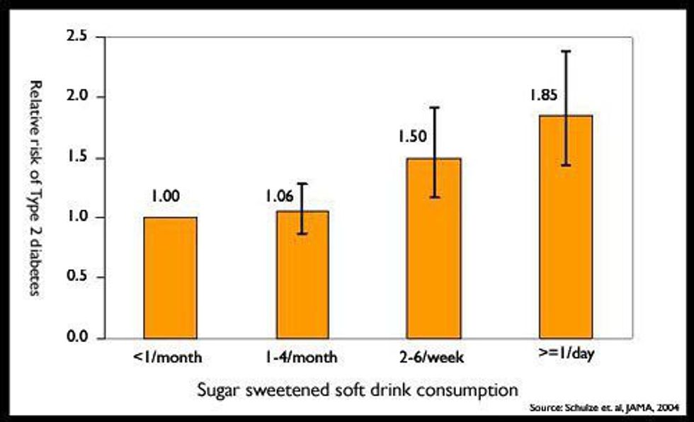 The following chart shows the correlation between type 2 diabetes risk and number of soft drinks consumed: