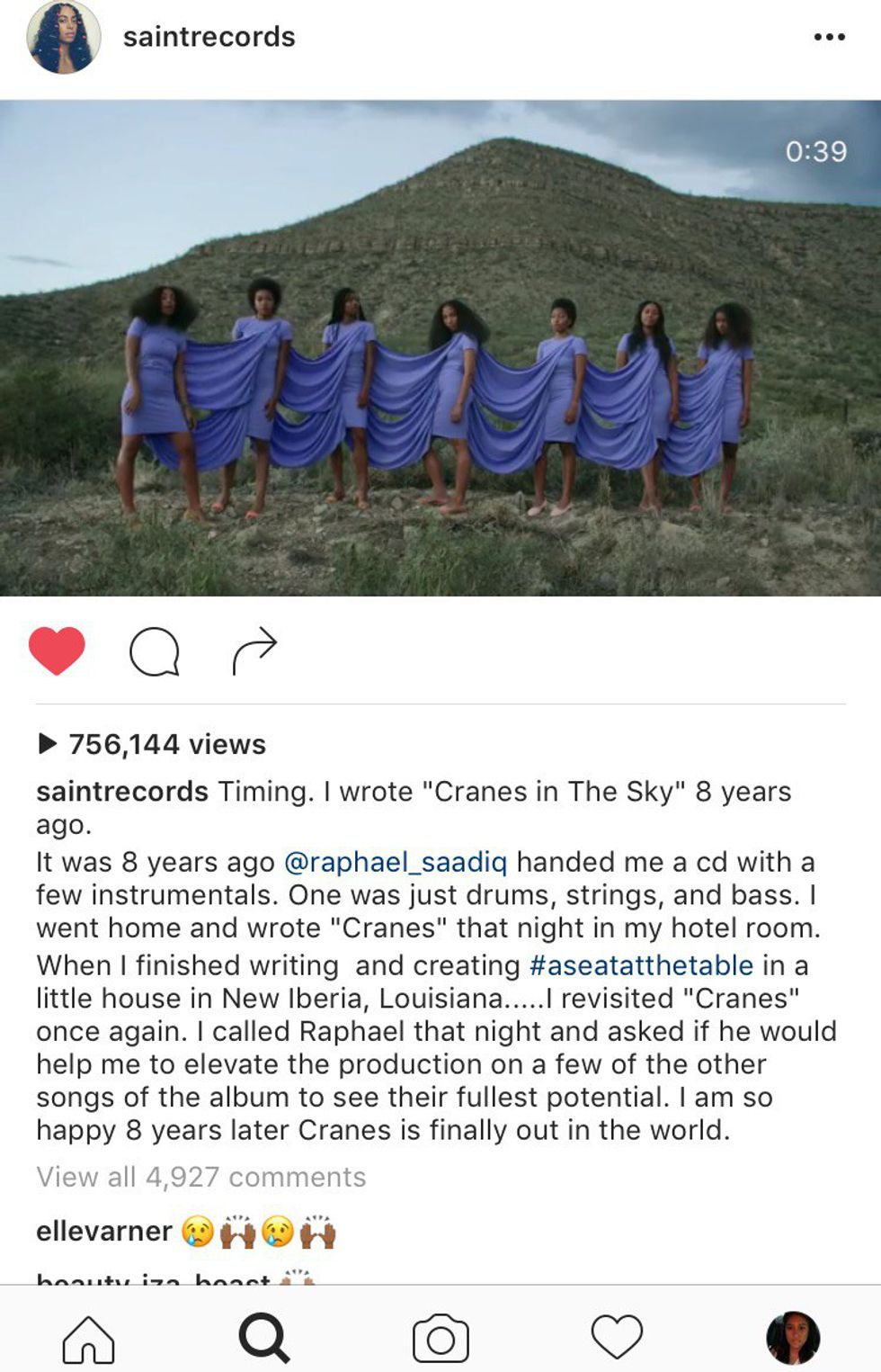 “I ran my credit card bill up, thought a new dress would make it better. I tried to work it away, but that just made me even sadder. I tried to keep myself busy, I ran around in circles, think I made myself dizzy.” -Solange 'Cranes in the Sky'
