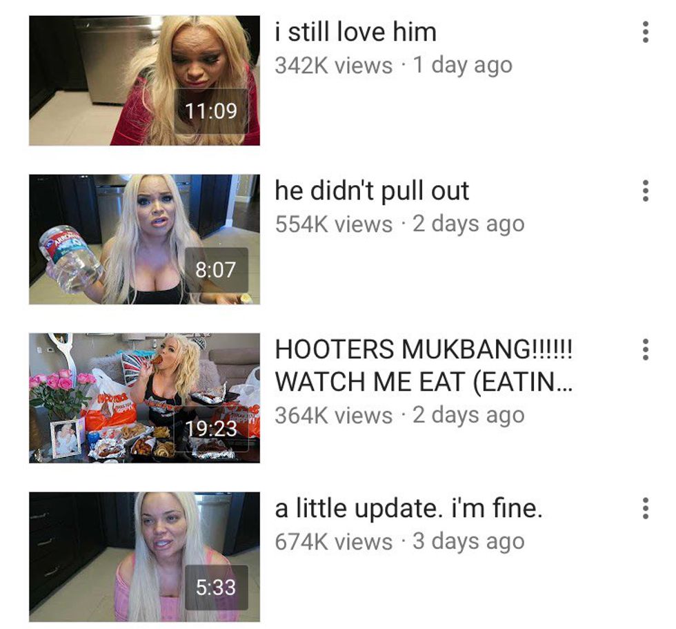 Trisha Paytas has been active on YouTube for the past ten years under the channel “blndsundoll4mj”, where she shares her music videos, eating shows, and clothing hauls. Her content features nothing exquisite and is mostly obnoxious, but on December 10, 2016, she drew massive attention as she discovered that her boyfriend of one year had cheated on her with another guy and posted every detail and every tear on her channel. It’s a roller coaster to watch, and I’m looking out for someone to post their own psychological analysis of this woman. For those who don’t have hours upon hours to devote to following the ongoing drama, this is a timeline of all significant videos.