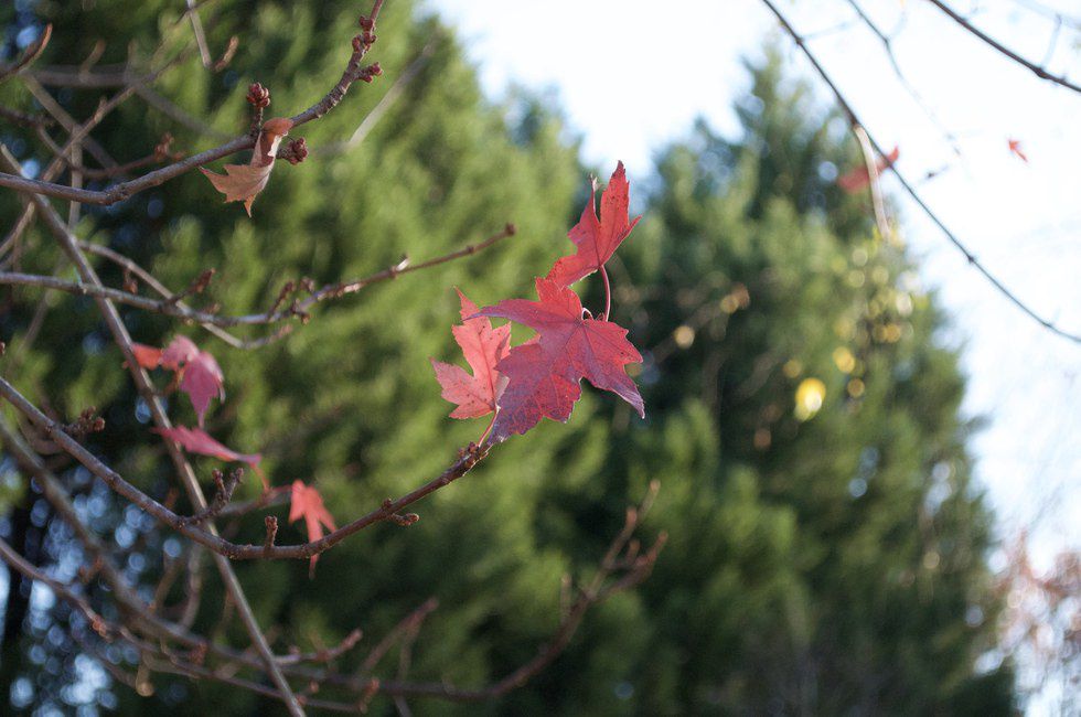 I took this picture of a beautiful and vibrant red leaves barely hanging onto this tree. To me, these red leaves show me how beautiful nature is. The way one can also see a tint of purple on these leaves somehow convey a message to me: "There's more that meets the eye." Naturally, one would quickly identify these leaves as just red. But to me, I se a tint of purple and love inside each leaf dangling on the tree.