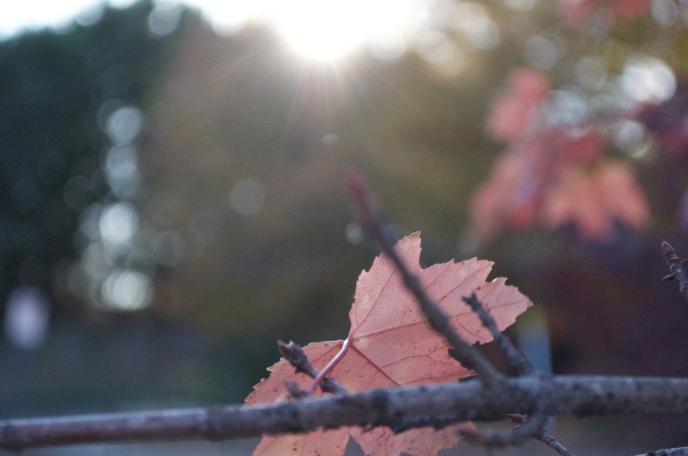 Just glancing at this picture makes me feel warm. At the very top, you can view the bright sun shining onto this small leaf hanging onto the tree. It's almost as if the sunlight is giving hope and encouragement to the leaf. I found this picture especially fascinating.