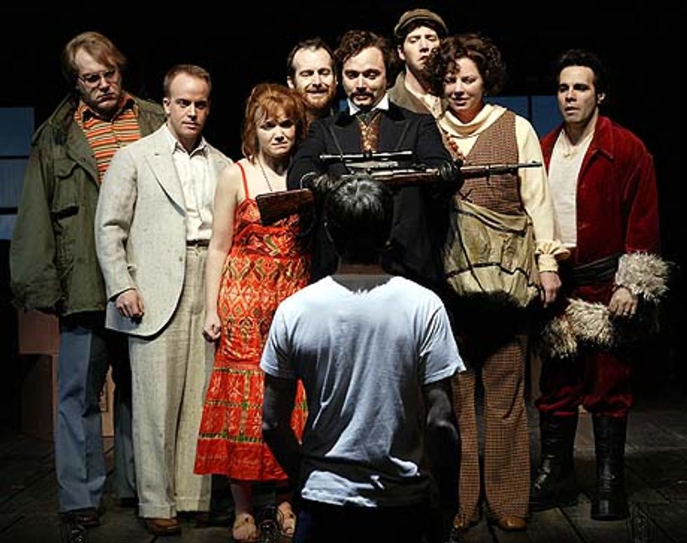 Stephen Sondheim and John Weidman's "Assassins" is a political thriller that was not initially well-received because of its subject matter. The show tells the stories behind America's most infamous men and women: nine individuals who have assassinated or attempted to assassinate American presidents. The show opens with the Proprietor telling the assassins that "Everybody's got the right to be happy." That's the American Dream. If people want to be happy then they should be able to fight for it. The Declaration of Independence tells its citizens that they have the right to pursue happiness; the Proprietor extends that right to the assassins.