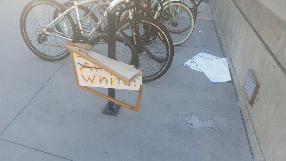 I saw this little sign with the words "Jesus Ain't White" broken and destroyed by someone.