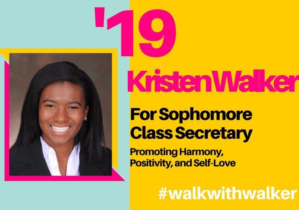 I would have enjoyed more of a challenge, but not having an opponent makes it very clear to the sophomore class that I am the best person for the job. The sophomore class at Spelman will not regret having me in the position of Sophomore Class Secretary because I am vision and goal oriented, meaning that I will get the job done. I love Spelman College and as Sophomore Class Secretary, I will be able to serve my class while also promoting values which are already important to me: self love, harmony, and gratitude. Vote Kristen Walker for Sophomore Class Secretary and you will see the difference that I would make on this campus and within the AUC.