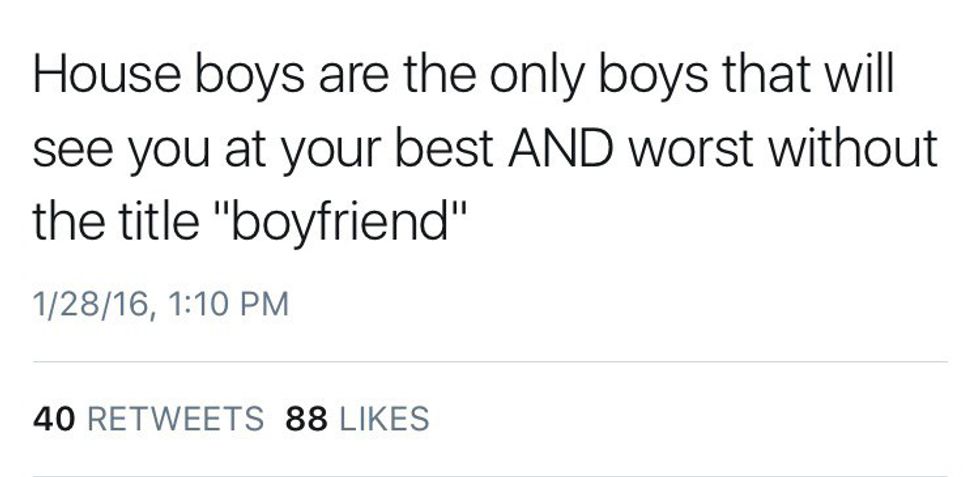 House boys are the only boys in college that will see you at your absolute best AND absolute worst without the title “Boyfriend.”