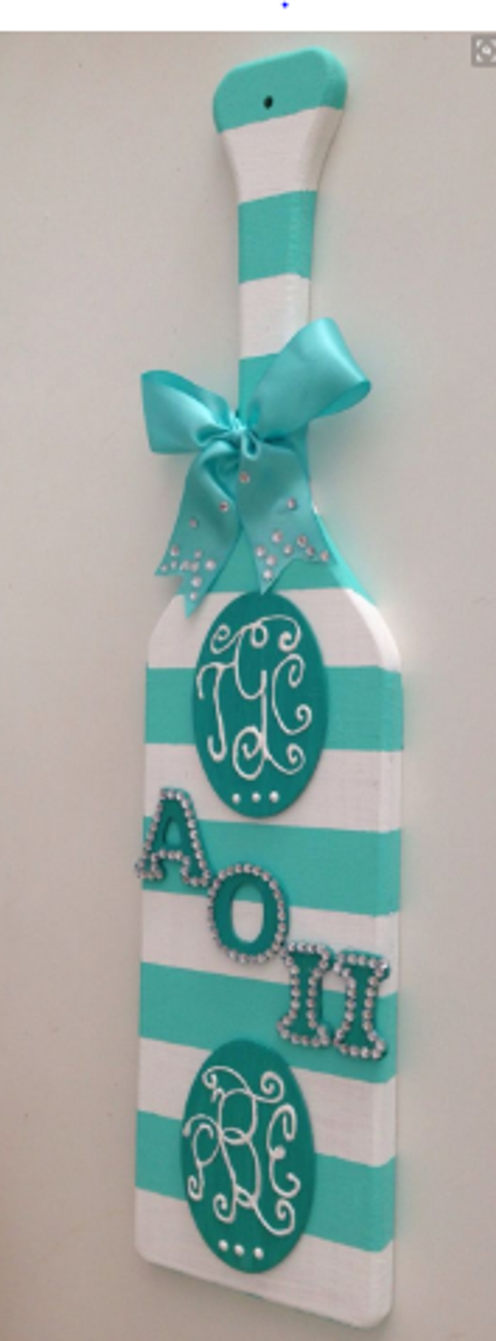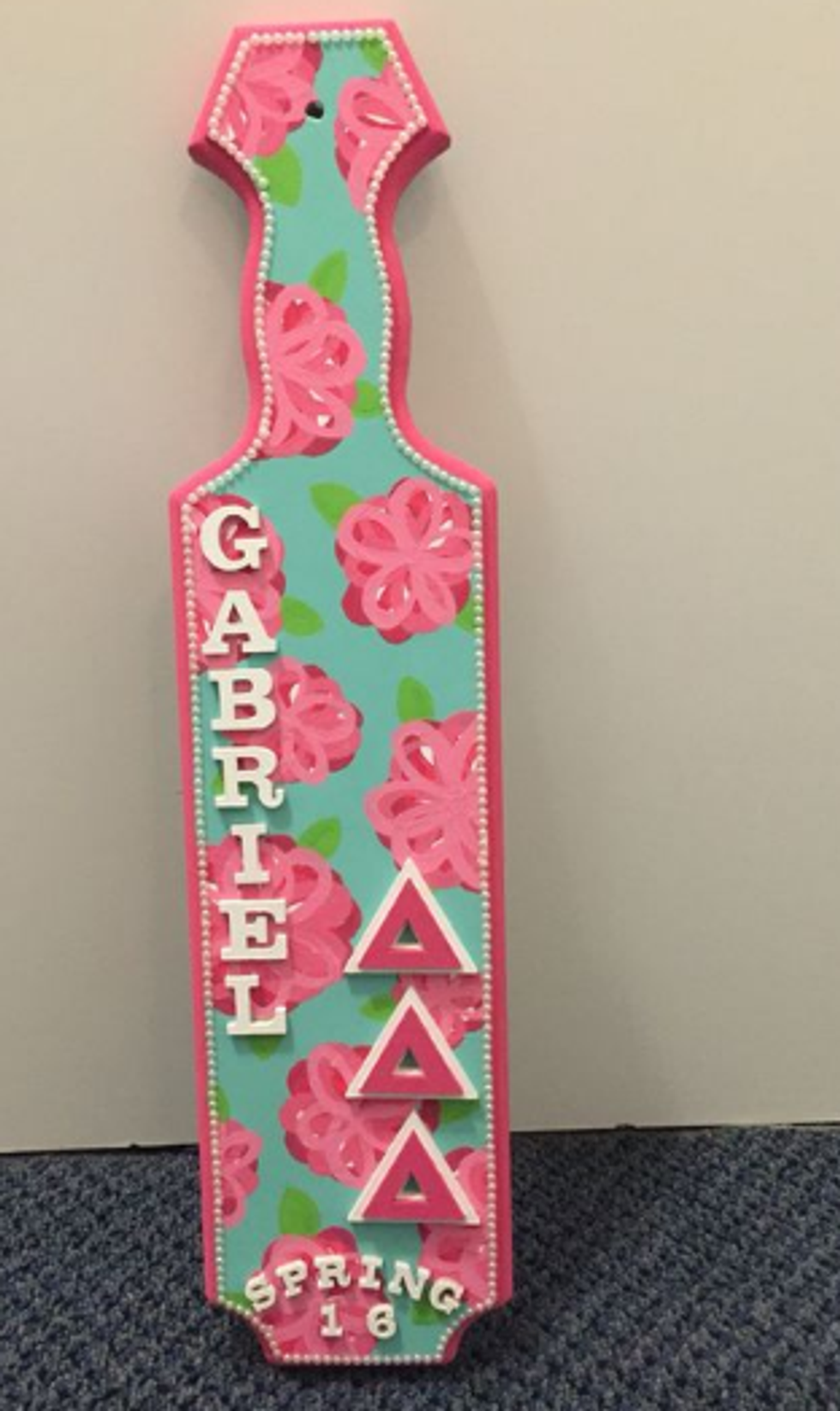 The designer themed paddle is a classic. If you can paint or modge podge a Lilly pattern then go for it. You could also keep it classy and simple with a Kate themed paddle with some black stripes or gold. You really can't go wrong with paddles like these.