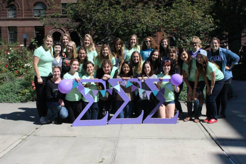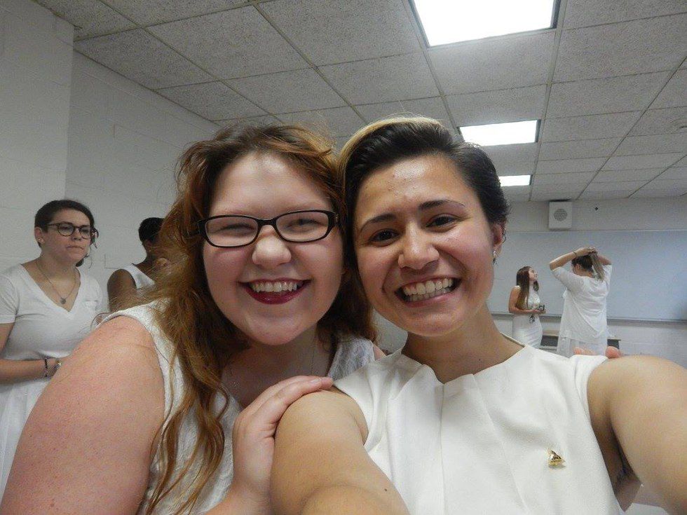 I joined Sigma Sigma Sigma, also known as Tri-Sigma, fall semester of my sophomore year in 2014. When I first heard about Greek life, my RA freshmen year (who is now my big) was wearing her letters at our first floor meeting. I knew it had to do with a sorority but I didn't know what it meant. I didn't go to any of the info nights because I was too shy, but I really wanted to go because I wanted to know what Greek life was about. A few people from my major went through recruitment freshmen year and seeing them participate looked like they were having a lot of fun. I decided too late to put myself out there to participate in recruitment. Spring semester freshmen year I went through recruitment, and I wasn't able to join because Tri-Sigma had already met their total. But finally sophomore year, I went through recruitment again, the new member process, and finally got initiated!!!