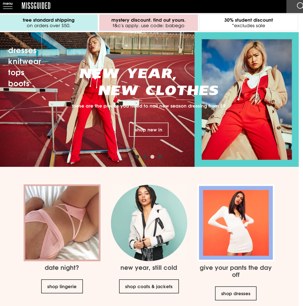 For those of you who seek edginess over girliness, Missguided is the place. Original to the UK, Misguided has unconventional styles at a reasonable price. The style is perfect for petite girls. Missguided also features a 30% student discount and free shipping over 50$.