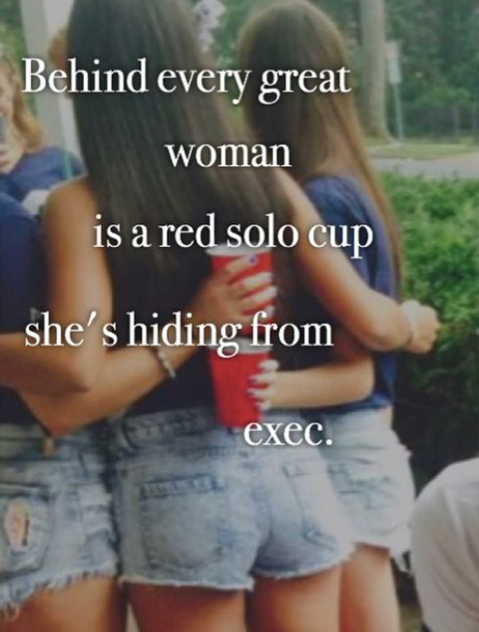 Most students will be under 21 until we are juniors or seniors; that’s just how it works. So, if you are seen shot-gunning, chugging or funneling anything in a picture before then, you can guarantee you will get a text from Standards. No matter the situation or the excuses you provide, blatantly drinking while underage will cause any Standards Chair to give you the eye roll of all eye rolls. She knows you’re not 21, and she knows you have a good fake, but that doesn’t mean she’s not going to tell you to take that sh*t down.